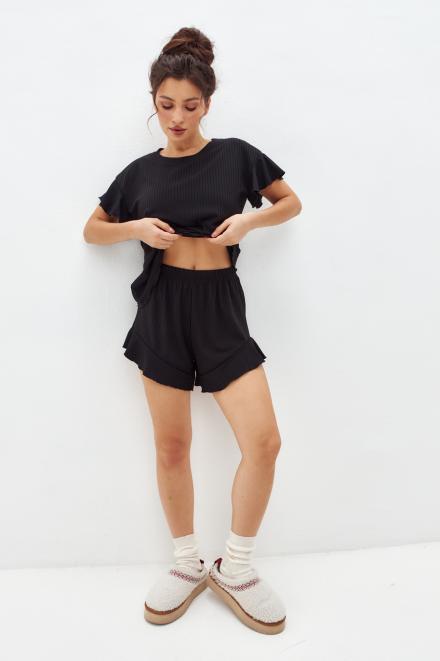 Костюмы из интерлока ближе к домашним, поэтому у них более простой крой: прямые брюки без манжет и свободная кофта без молнии и капюшона. В таком трикотажном комплекте приятно проводить время дома, он располагает к отдыху и расслаблению. Подростковые варианты из футера можно отнести к спортивным, они состоят из брюк с манжетами по низу и толстовки на молнии. И на штанах, и на кофте есть небольшие карманы. По цветовой гамме (индиго, антрацит) они больше подходят мальчикам, но по модели это унисекс.