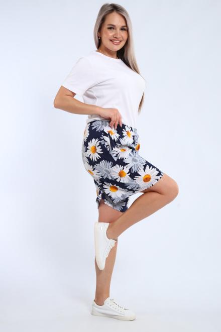 Шорты женские из кулирки Цветник ромашка макси